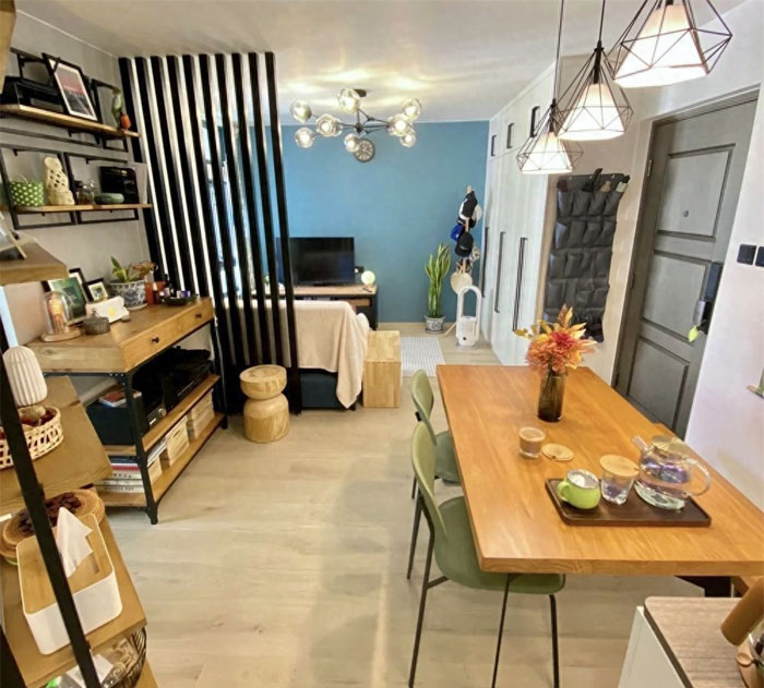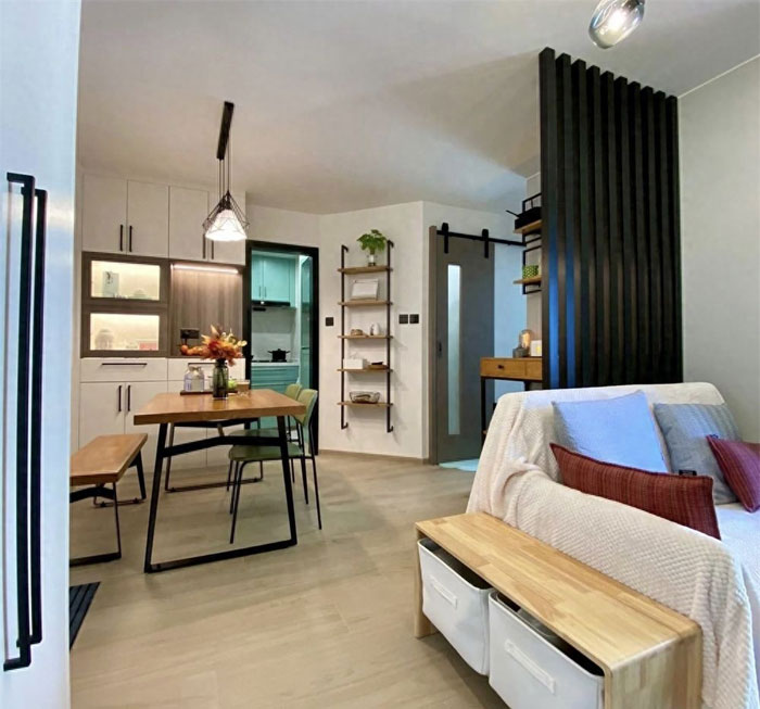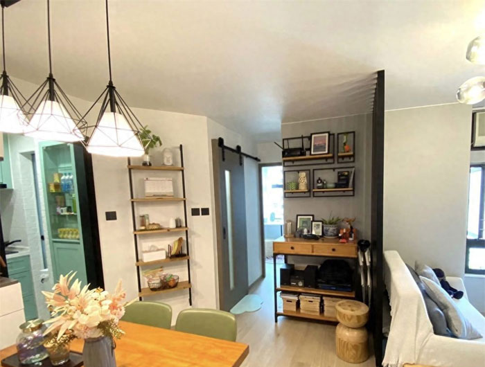 这个小家的面积只有420平方呎,换算下来大概是39平方米左右,原本室内是非常拥挤的,但重新装修后却变得兼具美观与实用性。