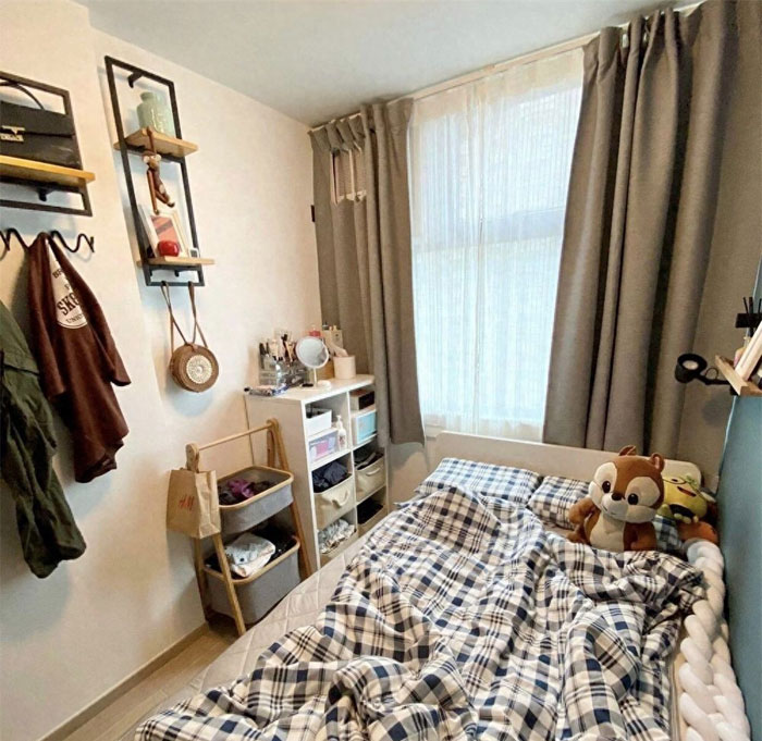 家里的两间小卧室都不算大,硬要说的话,主卧空间相对大一些,目前,主卧是一家三口睡眠休息的地方,孩子年龄大了以后可能会给她重新改造一下次卧。